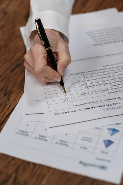 Visual representations, such as graphs, are frequently utilized, prompting students to locate the point where the line crosses the y-axis – this coordinate’s y-value is the y-intercept․ Some worksheets provide coordinate pairs, requiring students to substitute them into the equation to solve for ‘b’․ More challenging PDFs may involve real-world scenarios, like initial fees or starting values, representing the y-intercept in context; Accurately identifying ‘b’ is vital for understanding a line’s starting point and its behavior․